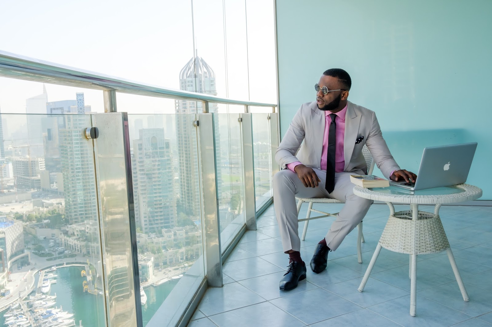 1.  Pink shirt, Black tie and a black-white Polka dot pocket-square