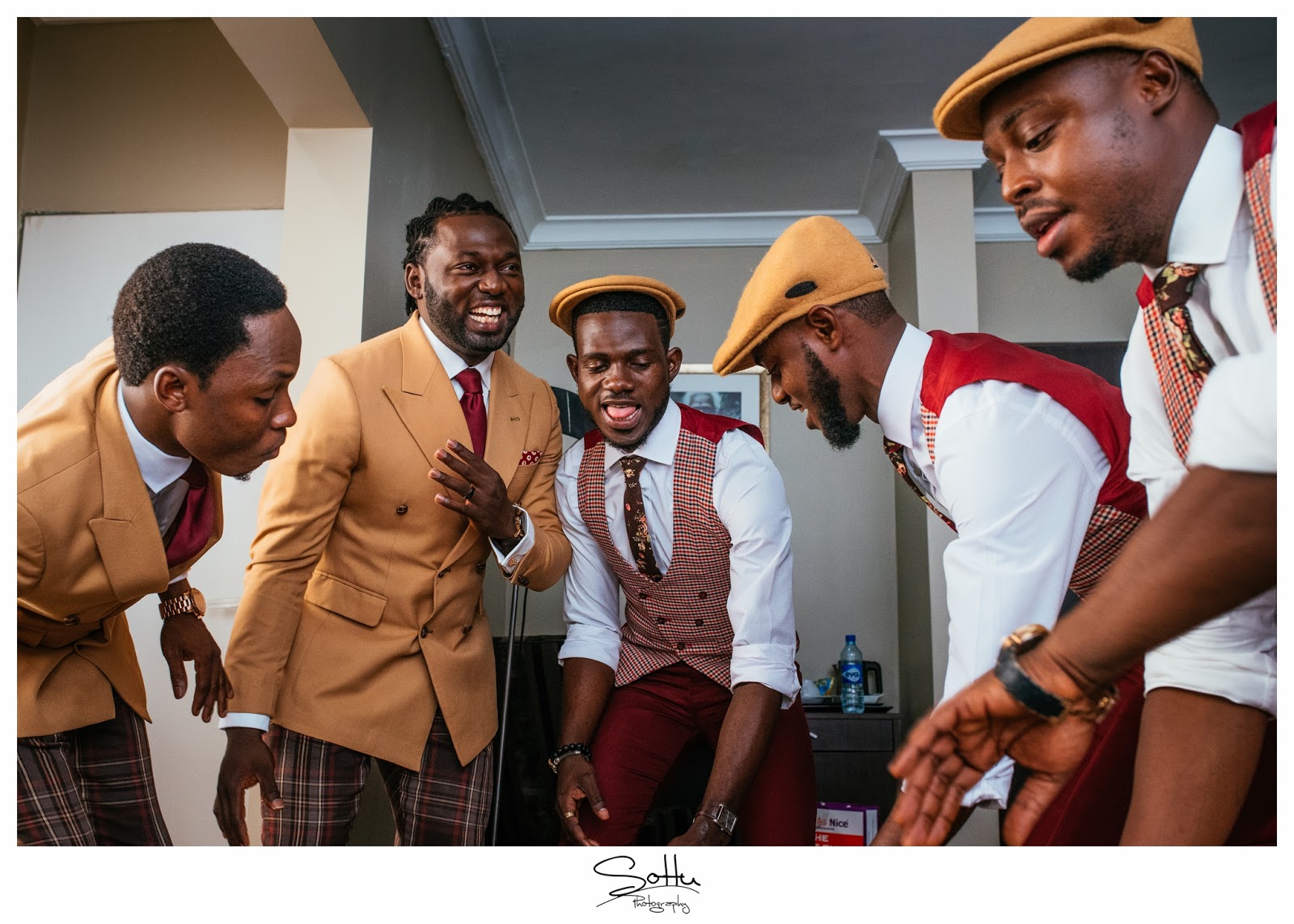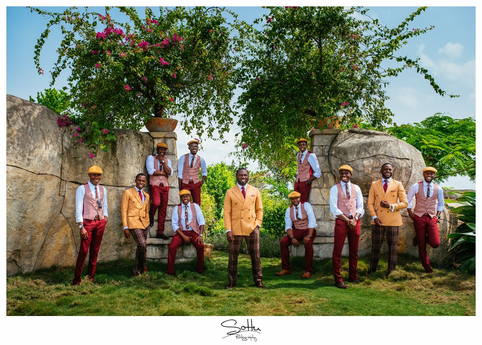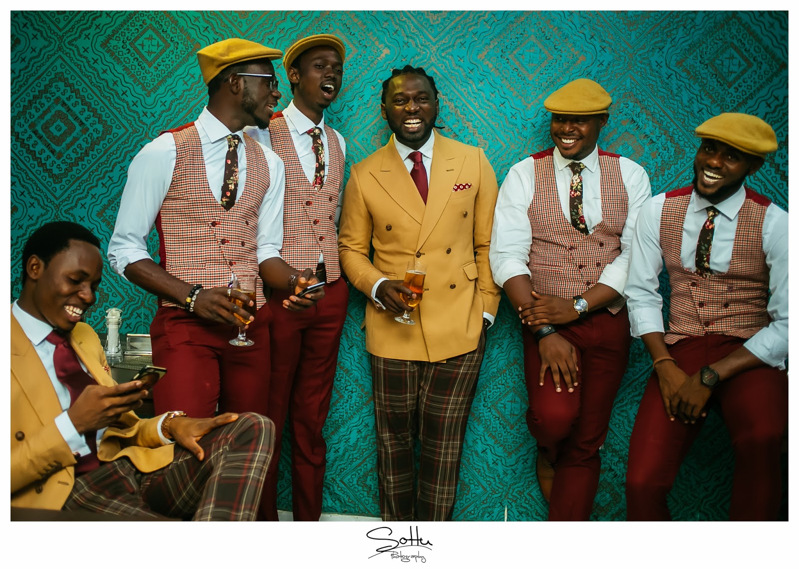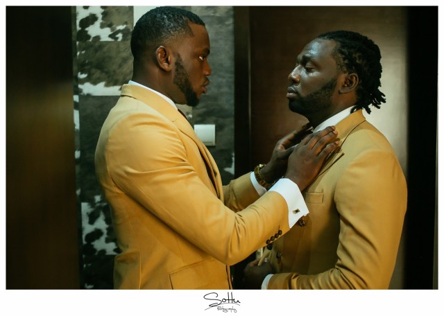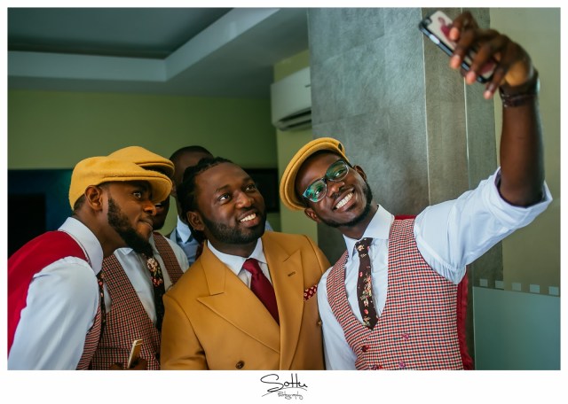 Of course because I’ve known him basically all my life, there was no question as to whether I was up for it and as the Chief Advocate for unconventional grooms and pushing the envelope, when my cousin asked me to lend a hand as regards the outfits of the Groomsmen, I was more than willing. As a top notch wedding photographer, Jide knew that he definitely didn’t want his wedding photos the same as everyone else’s and so I thought, what better way to stand out than Mustard and Burgundy? I came up with a look in line with the Vintage theme that was both original and clean and would more importantly, show Nigerian men that they can indeed wear colour. Needless to say, the wedding photos turned out fire and for the first time in a long time, Nigerian heads turned at the posts on social media! Not many people had ever seen a vintage groom quite like this.Today, I celebrate the original Vintage groom, my brother and my dear friend Jide ……. and his beautiful wife on their 2nd year Anniversary. I love you both and may your home continue to be as bright and colourful as your fire wedding photos!