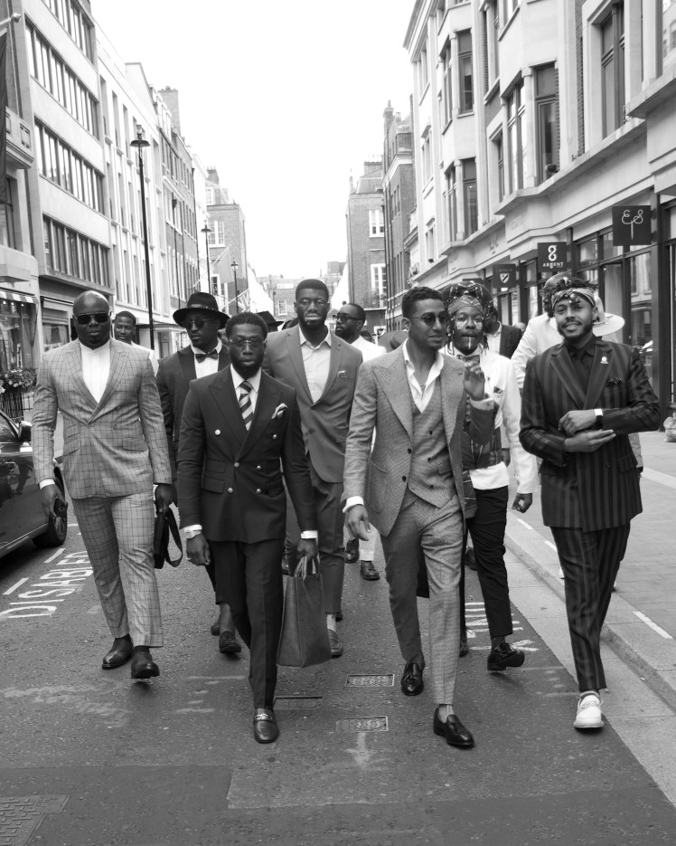 As we strutted down Savile Row, all suited up and making a powerful statement, onlookers couldn’t help but stop and take notice. Questions arose from the curious passersby: “Are you shooting a movie?” “Are you guys movie stars?” “Is this a music video?” “Is this an advert for one of the shops on Savile Row?” The truth was even more inspiring. We were part of the Black Menswear Flash Mob, an organization that has been hosting pop-up events around the world to bring Black men together, showcasing the strength and style of our community.
