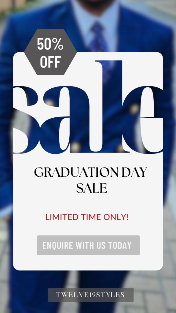 To further enhance your graduation experience, Twelve19styles, a fashion brand originating from Lagos, Nigeria, extends a special 50% discount to all graduating students. Our services include bespoke tailoring, personal styling, personal shopping, alterations, and suit rentals. Elevate your graduation style with Twelve19styles and make a statement that lasts a lifetime.