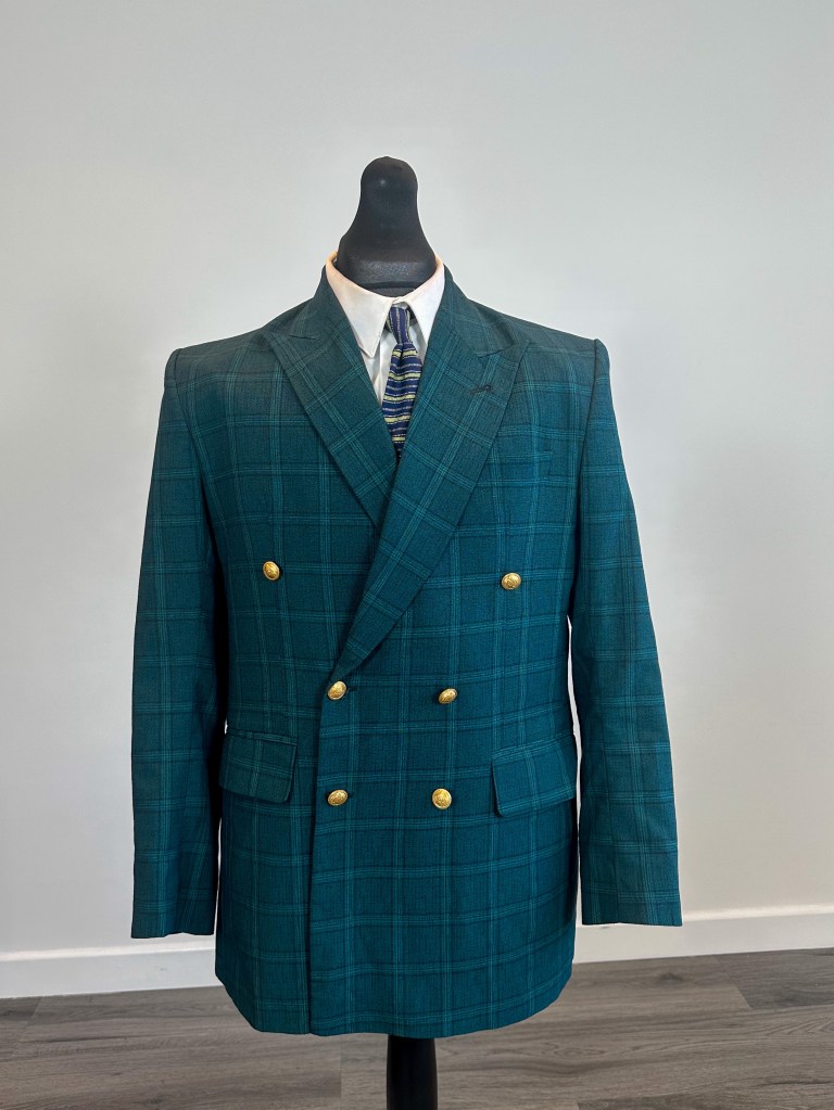 The double-breasted design adds a touch of old-world charm, while the checkered pattern infuses a modern twist, making it a true statement piece.