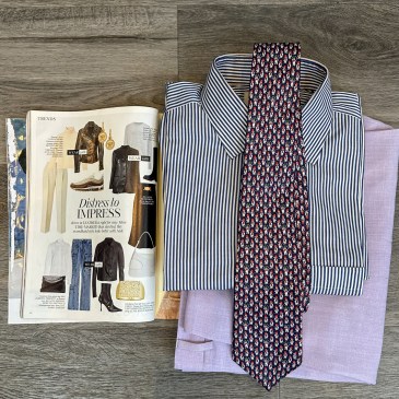 Creating the perfect outfit of the day is all about balance and coordination. For today’s look, I’ve chosen a blue stripe shirt paired with a lavender suit, accentuated by blue polka dot socks, and a blue tie with red details. The idea behind my outfit is to play with close colors, creating a cohesive and … More Lavender Suit Styling: Outfit of the Day